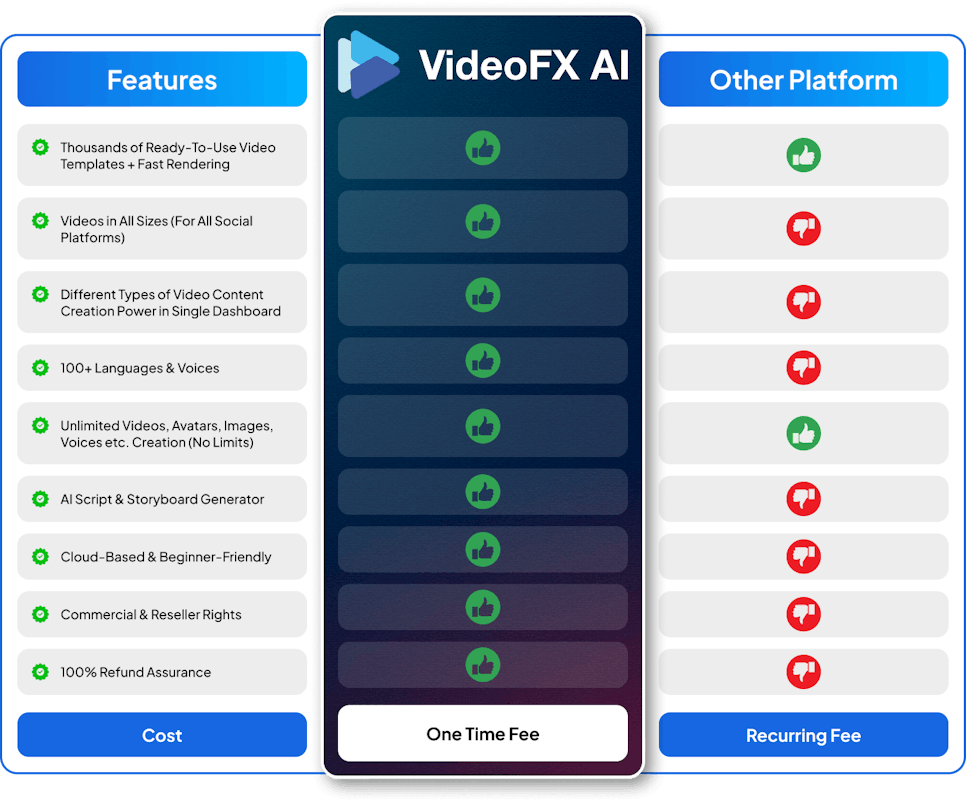 P.S. We’re excited to offer you Lifetime access to VideoFX AI for a low one-time price — but only during this special launch window.
